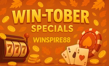 This October, let WINSPIRE88 ignite your passion for winning with the Win-tober Specials 2025. From exclusive raffles and leaderboards to thrilling daily bonuses, this event is your ticket to non-stop fun and fortune.